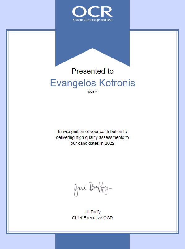 - Examiner for the Panhellenic Physics Examinations
